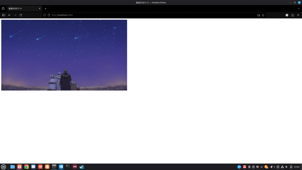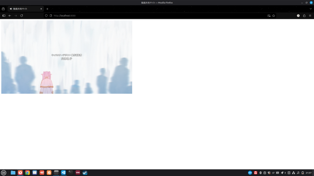 写真と違うやつを使いましたが、抜き出した画像をvideoタグに指定しました。こんな感じです。試しにやったので動画を一個だけ表示させています。そのためのコードも入ってますが気にしないようにお願いしますw