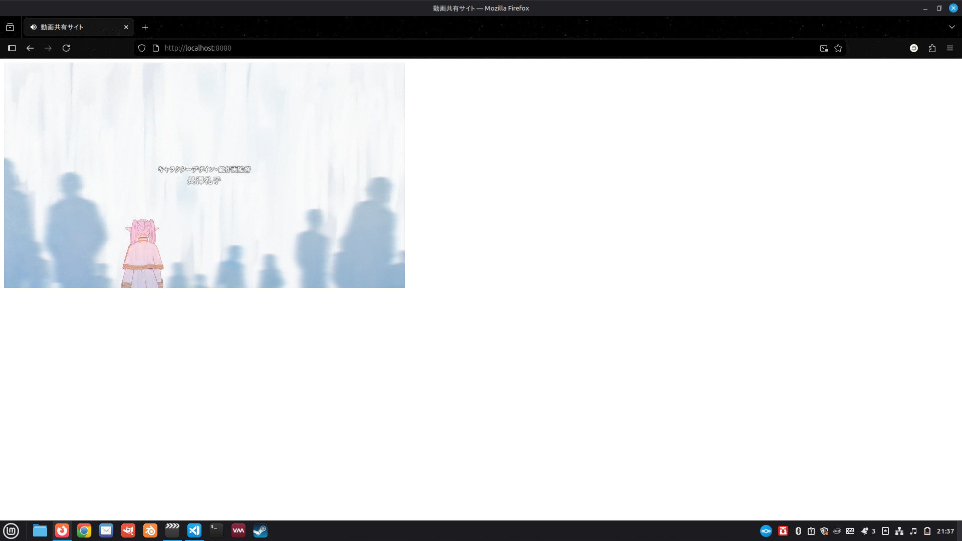 写真と違うやつを使いましたが、抜き出した画像をvideoタグに指定しました。こんな感じです。試しにやったので動画を一個だけ表示させています。そのためのコードも入ってますが気にしないようにお願いしますw